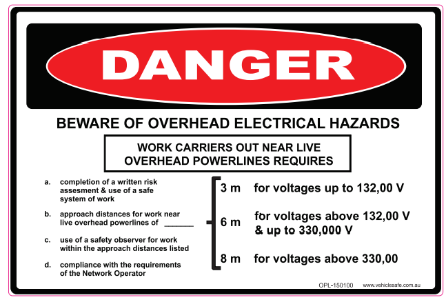 Danger Overhead Electrical Hazard Decal – 150mm x 100mm | High-Visibility Safety Label for Vehicles & Equipment